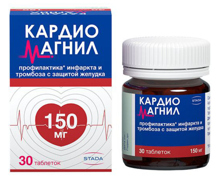 Таблетки проглатывают целиком, запивая водой. При желании таблетку можно разломить пополам, разжевать или предварительно растереть. Первичная профилактика сердечно-сосудистых заболеваний, таких как тромбоз и острая сердечная недостаточность при наличии факторов риска (например, сахарный диабет, гиперлипидемия, артериальная гипертензия, ожирение, курение, пожилой возраст) 1 таблетка Кардиомагнила, содержащего АСК в дозе 150 мг в первые сутки, затем по 1 таблетке Кардиомагнила, содержащего АСК в дозе 75 мг 1 раз в сутки. Профилактика повторного инфаркта миокарда и тромбоза кровеносных сосудов 1 таблетка Кардиомагнила, содержащего АСК в дозе 75 — 150 мг 1 раз в сутки. Профилактика тромбоэмболии после хирургических вмешательств на сосудах (аортокоронарное шунтирование, чрескожная транслюминальная коронарная ангиопластика) 1 таблетка Кардиомагнила, содержащего АСК в дозе 75 — 150 мг 1 раз в сутки. Нестабильная стенокардия 1 таблетка Кардиомагнила, содержащего АСК в дозе 75 −150 мг 1 раз в сутки.