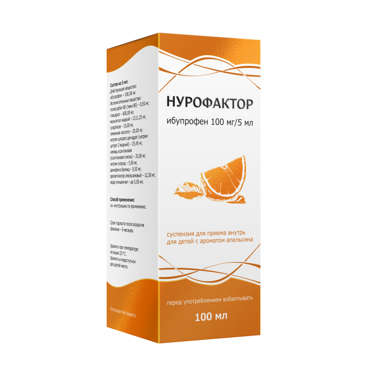 Нурофактор (ибупрофен 100мг/5мл) с ароматом апельсина сироп 100 мл